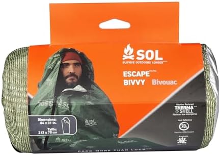 SOL Escape Bivvy with Hood – Emergency Preparedness Blanket – Displays As much as 70% Physique Warmth – Out of doors Survival Bivvy – Water Resistant – Sturdy & Breathable – Winter Tenting Provides – Inexperienced