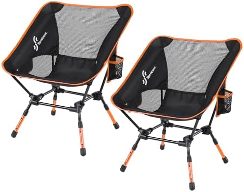 Sportneer Tenting Chairs: 3 Heights Adjustable Folding Chairs for Exterior with 2 Facet Pockets – Compact & Transportable Garden Chairs for Backpacking, Tenting, Climbing, Picnic and Journey (2, Orange)