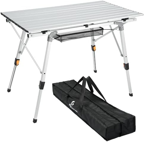 Straightforward to Carry: The aluminum panel tabletop will be rolled up, and the legs will be folded and outfitted with anti-slip ft. The included carrying bag makes the foldable tenting desk extraordinarily compact for storage and transportation. After folding, the scale is 36.6 inches x 7.5 inches. Weight: 8.6 kilos (3.9 kilograms).