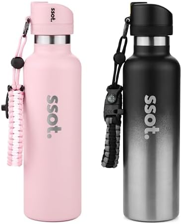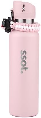 ssot BUZZTLE 120DB Alarm Insulated Stainless Metal Water Bottle with Fireplace Starter Compass Whistle Emergency Security Alarm Survival Equipment Bracelet (Pink)