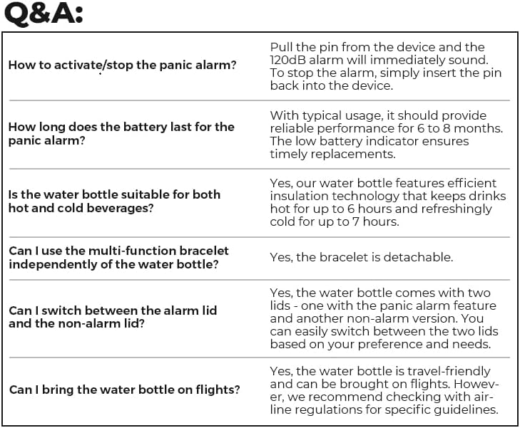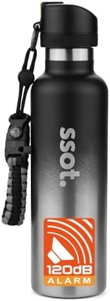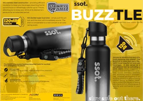 ssot BUZZTLE 120DB Alarm Insulated Stainless Metal Water Bottle with Fireplace Starter Compass Whistle Emergency Security Alarm Survival Package Bracelet (Black)
