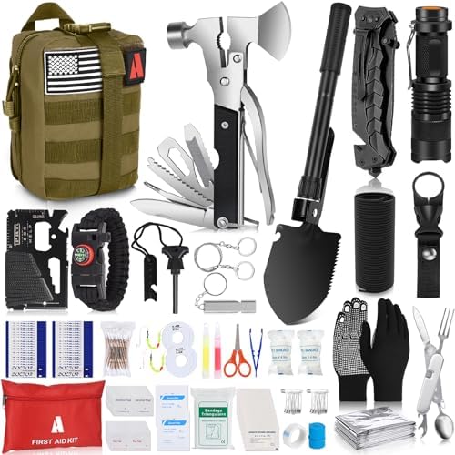 【High Sensible Survival Instruments】: All survival gears on this package are important, consists of 15 in 1 Multifunction Axe, 12 in 1 Saber Card, 4 in 1 Shovel, 4 in 1 Tenting Utensil, 4 in 1 Survival Bracelet, 4 in 1 Tactical nif, 2 Units of Fishing Equipment, Fireplace Starter, Compass, Hammer, Flashlight, Raincoat, Emergency Blanket, Gloves, Whistle, Wire Noticed, Pen and extra, which might meet your totally different wants.