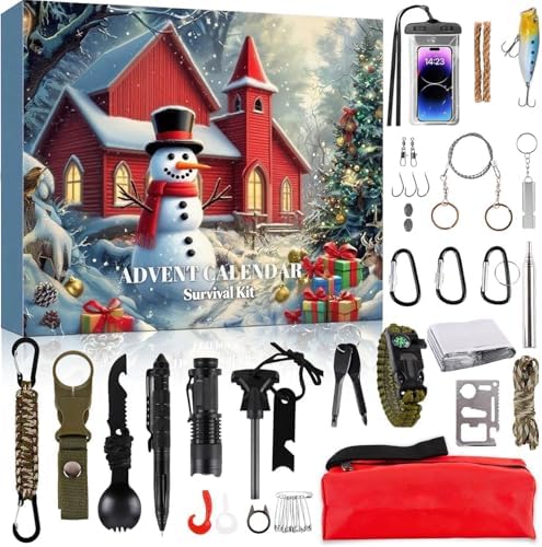 【24-in-1 Survival Instruments】This introduction calendar survival kits incorporates every thing a wilderness journey fanatic wants, consists of paracord bracelet, emergency blanket, fireplace starter, multi-functional spoon, fishing equipment, whistle, and so forth