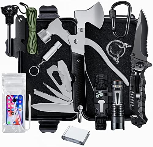 13 in 1 Survival Gear and Gear: Survival package accommodates the sensible instruments you want when an emergency happens. 14 in 1 survival axe, 8 in 1 survival knife, 6 in 1 survival rope bracelet, hearth starter, waterproof case, flashlight, wire noticed, steel Lanyard, umbrella rope, silver whistle, waterproof bag, first assist blanket, waterproof cellphone bag, and many others. Appropriate for males, girls, mother and father. It is a cool gadget for girls and boys.