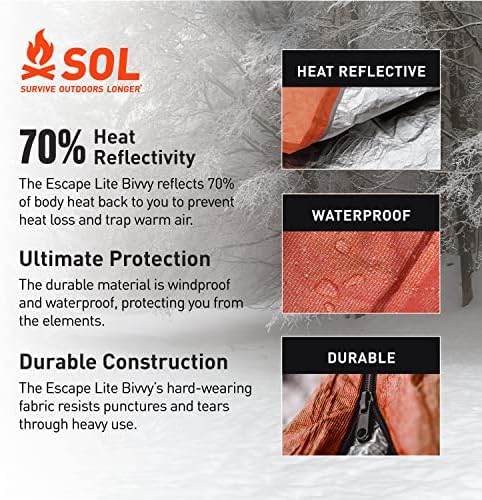 For many who want backcountry shelter that breathes, the S.O.L. Survive Outside Longer70% Reflective Escape Lite Bivvy was developed particularly for you. Constructed with our proprietary Escape material and with a minimalist design, the Escape Lite weighs in at solely 5.5 ounces and packs extremely small. The proprietary material lets moisture escape on the identical time that it retains rain, snow, and wind on the surface – all whereas reflecting your physique warmth again to you. The Escape Lite isn’t any one-trick pony both, use it as a liner to boost the heat of your conventional sleeping bag, as an ultra-light weight summer time bag, or as an emergecy bivvy. Now you actually can go additional and discover longer!