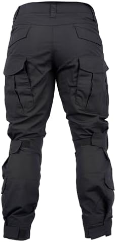 Males’s Cargo pants elastic waistband options widened belt loops to assist tactical belt; Hook and loop closure with zipper.Fight pants with knee pads pockets assist insert knee pads to guard your leg while you do navy coaching and out of doors sports activities.