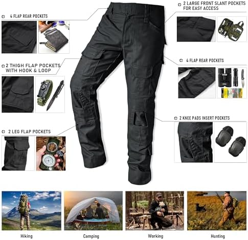 Materials: 65% Polyester + 35% Cotton material with a barely waterproof therapy that retains you dry all day lengthy. Repel the stains, liquids, and soil. These work pants for males characteristic breathable, scratch-resistant, barely waterproof, no fade, comfy and versatile.Design particulars: Hook and loop closure with zipper; Multi-pockets design; Knee pads insert pockets; Hook and loop closure on waist/ pocket/ knee/ backside to regulate for a cushty match; Hips and legs with 3D tailoring for higher match; Waterproof and wear-resistant material. The waterproof therapy ensures added safety by passing rain climate, Multi-Pockets: These males’s tactical pants are as much as 10 pockets for storing varied gear and every day requirements. 2 Giant entrance slant mobile phone pockets for simple entry; 2 Thigh flap pockets for fast storage; 2 Calf flap pockets for extra comfort to get objects when squatting or crawling; 4 Flap rear pockets with hook & loop closure for deep and safe storage. Irrespective of out of doors journey, working, mountaineering, or informal gown, these pants are constructed for versatility and further storage.Appropriate:Tactical cargo pants for all seasons, out of doors sports activities, informal put on, and every day work. Fantastic reward to your father, husband, son, and boyfriend on birthdays, Halloween, Christmas, Valentine, Thanksgiving Day, and many others.