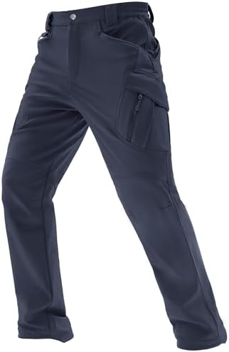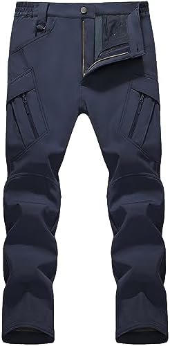 TACVASEN Males’s Winter Pants 9 Pockets Fleece Snow Climbing Pants Water-Resistant Heat Softshell Thick Tactical Pants