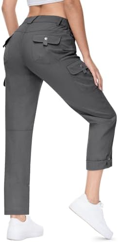 TBMPOY Girls’s Mountain climbing Pants Convertible Light-weight Roll-Up Capri Fast Dry Journey Outfits Cargo Pockets Out of doors Work Fishing