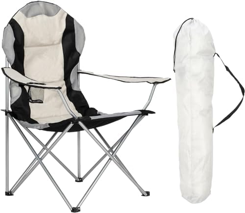Tenting Chair, Camp Chairs for Adults Heavy Obligation, Fishing Chair, Folding Chairs Tenting, Garden Arm Chair with Cup Holder, Helps 330lbs, Oxford Material Moveable Small Outside Chairs,Black Grey