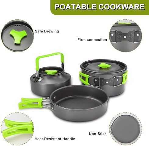 Wholesome Materials Cookware – The tenting cooking set is product of high-quality anodized aluminum and food-grade silicone materials that’s non-toxic, light-weight, excessive temperature resistant, simple to scrub and fast warmth switch to save lots of time and gas