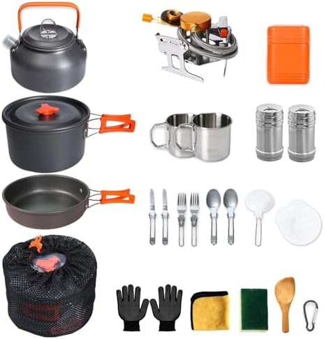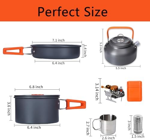 Tenting Cookware Set for two Folks: Tenting mess package comes with 2 units of utensils, appropriate for {couples} or double tenting. The dimensions of the pot is 6.8 inches * 3.6 inches, capable of cook dinner meals for 2-3 individuals, good for outside actions for a number of teams