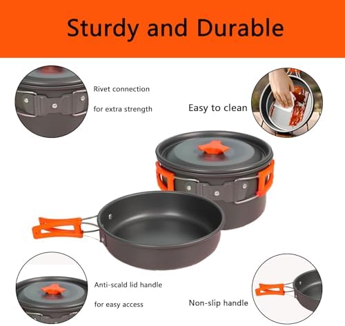 Simple to Carry Tenting Mess Equipment: This tenting necessities has an identical organizer bag for straightforward storage and carrying. The cookware is manufactured from high-grade aluminum oxide, that includes light-weight materials, quick warmth conduction, wear-resistant and corrosion-resistant. It’s also very straightforward to scrub, not solely capable of hand wash, but additionally mechanically cleanable, will make you’ve a nice tenting expertise