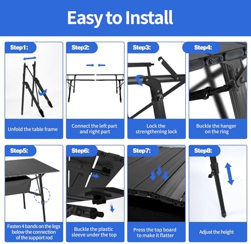 Steady Construction – “X”-shaped bolstered aluminum assist rods on either side present excessive stability and forestall shaking. When putting objects on tenting tables that fold up light-weight, 4 aluminum bolstered buckles stop the legs from shaking even full load