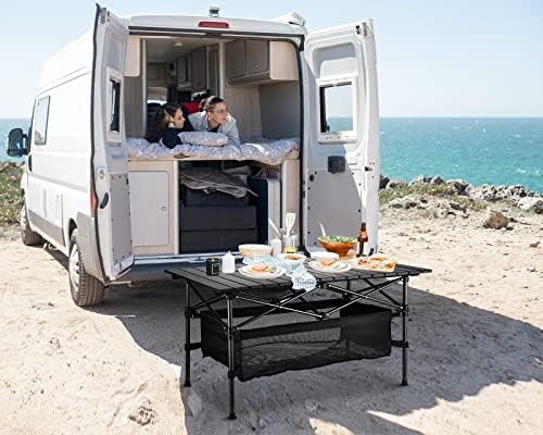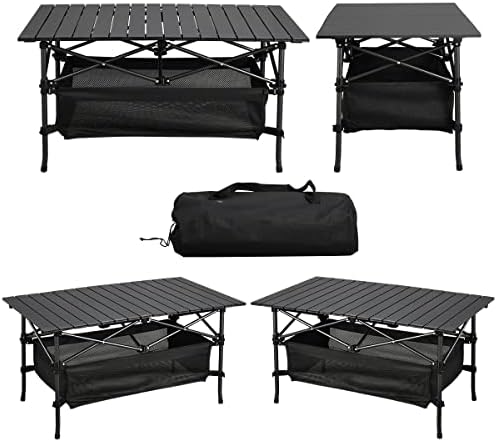 Tenting Desk That Fold up Light-weight, Aluminum Folding Desk Roll Up Desk with Straightforward Carrying Bag for Indoor, Outside, Tenting, Yard, BBQ, Get together, Patio, Seashore, Picnic, Medium