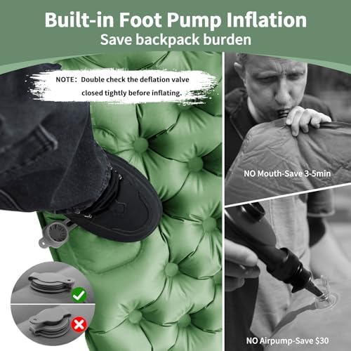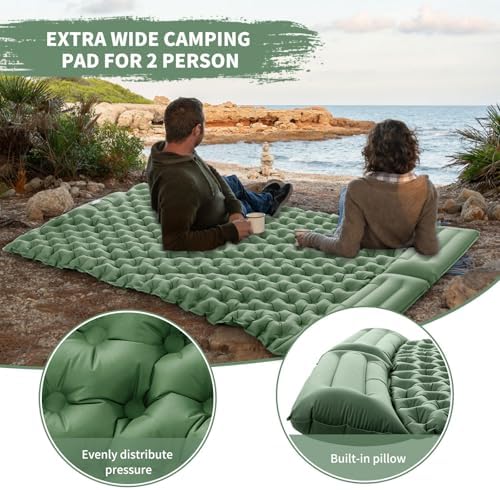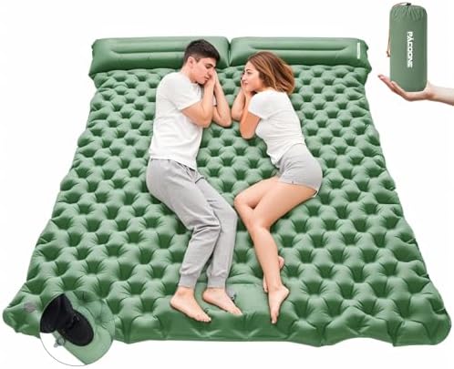【Fast Inflation and Deflation】 The double sleeping mat has a built-in foot pump that takes solely 2-3 minutes to totally inflate utilizing foot strain. As well as, after opening the venting valve, rolling up or urgent the sleeping pad can launch air sooner. The air valve of the sleeping mat adopts a double-layer design and has a built-in anti-leak movie, so that you don’t have to fret about air leakage!