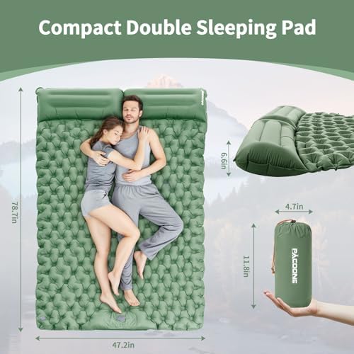 【Thicken Double Sleeping Pad】 The thickened tenting sleeping pad is designed with a bigger dimension: 78.7” X 47.2”, offering spacious house and robust help, sufficient to accommodate 2 particular person, permitting you to take pleasure in a deep sleep in any out of doors setting!