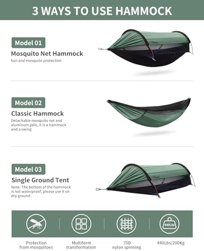 ✅【3 In 1 Multifunctional Tenting Hammock】Expertise consolation and adaptability with our transportable hammock that mixes three features: 1) a hammock with netting mosquito, 2) a standard tree hammock, and three) a floor hammock tent. Journey Hen hammock tent meets your totally different calls for in tenting, backpacking, mountain climbing, out of doors journey, or simply hanging and enjoyable in yard.