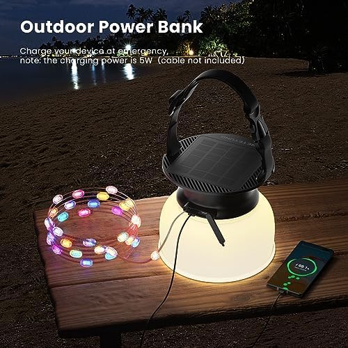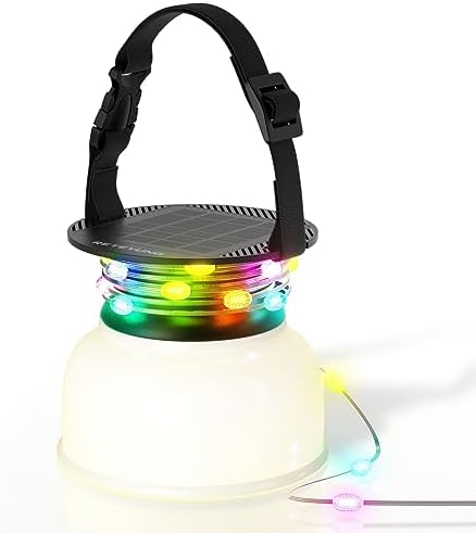 4 IN 1 SOLAR POWERED CAMPING STRING LIGHTS – This tenting gentle combines 8 RGB coloration string lights, tenting lights, solar energy charging, and energy financial institution capabilities. It’s a vital instrument for darkness, energy outages, and emergency conditions throughout tenting and out of doors journey.
