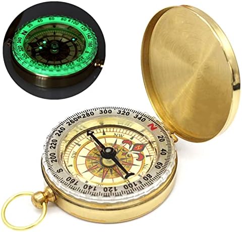 Tenting Survival Compass for Mountain climbing,Small Golden Pocket Compass for Children,Glow in The Darkish Waterproof Classic Metallic Army Gear Compass for Looking Backpacking Out of doors Navigation Device