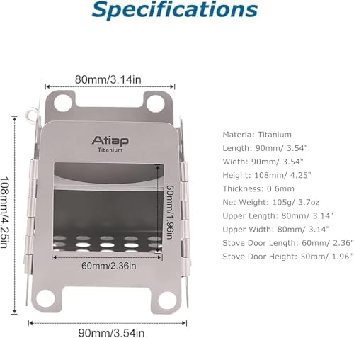 Materia: TitaniumLength: 90mm/ 3.54″Width: 90mm/ 3.54″Top: 108mm/ 4.25″Thickness: 0.6mmNet Weight: 105g/ 3.7ozUpper Size: 80mm/ 3.14″Higher Width: 80mm/ 3.14″Range Door Size: 60mm/ 2.36″Range Door Top: 50mm/ 1.96″ Appropriate for Out of doors Tenting Mountaineering Picnic