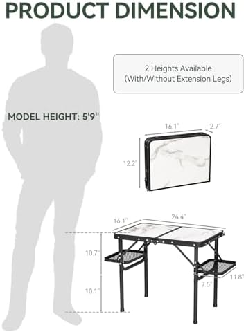 Easy 5-step Set up (No instruments wanted). Step 1: Unlock and unfold. Step 2: Pull out the legs and straighten the latches. Step 3: Take out the extension legs and insert. Step 4: Flip over the desk and lock the aspect buckles. Step 5: Push outward to open the wings, straighten the latches. Carried out. Please seek advice from the set up steps within the image.