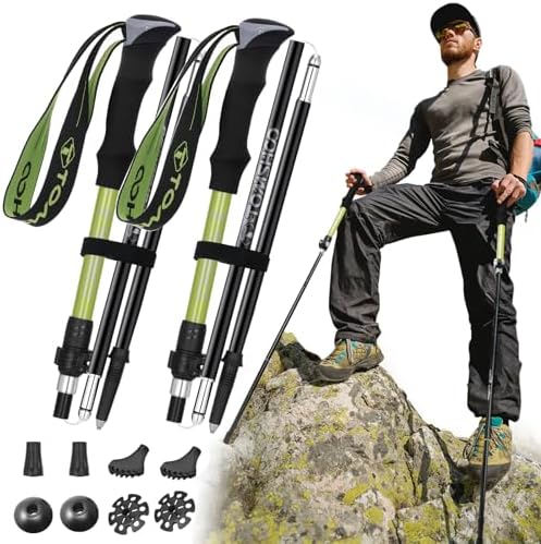 【Extremely Light-weight & Sturdy】Weighting solely 9.5 oz per pole, collapsible design, related by a wear-resistant polyethylene fiber cable, saved simply in your backpack. made from carbon and 7075 aluminum, withstands extra strain and impression. Takes the strain off your knees, helps distribute the burden, and offers added stability. nice for long-distance trekking and journeys the place sturdiness is the first concern.