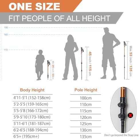 ⭐ SPECIFICATION – Adjustable from 25“- 53″ (64CM-135CM), it’s good swimsuit for individuals who is 44″-78″(111-198). Solely weight 8.5oz (0.5lbs), everybody can simply take it even after lengthy stroll. Take it along with your mountain climbing and go additional with ease!