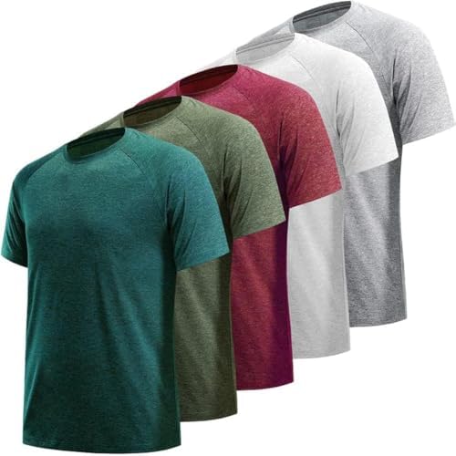 TVKSOM Exercise Shirts for Males Pack Fast Dry Moisture Wicking Shirts for Males Health club Athletic Train Brief Sleeve Tee Tops