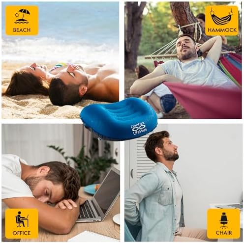 【Transportable Measurement, Mega Consolation】ComfortLifePlus Inflatable Pillow for tenting is small, light-weight, and comfy. When folded, it is 5×2 inches and weighs solely 3.9 oz (110g) which makes it an ideal moveable backpacking pillow. This seaside pillow is the last word companion for good sleep, whether or not it is airplane journey, backpacking, or just a calming day on the seaside.