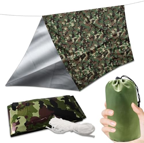 Ultralight Survival Tent 2 Particular person Emergency Shelter Outside Thick Emergency Blankets Nylon Stuff Sack Tube Tent Survival Tarp Tenting & Outside Survival Kits for Tenting Climbing (Woodland Camo)