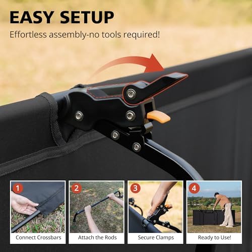 Fast & Straightforward Setup – Due to the revolutionary lever-handle construction, setup takes as little as 1 minute when you’re acquainted with it. Merely place the 2 lengthy help rods and press right down to lock the legs into place securely and effectively.