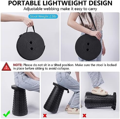 [Premium Durable Materials]: Retractable stool product of high-strength heavy-duty environmental pleasant materials plastic PA66, the cylinder form design, tight connecting clasps, and the non-slip base of the transportable folding stool will give stability to supply protected and comfy sitting.