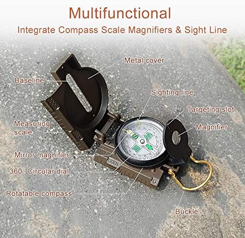 VANVENE Multifunctional Navy Compass, Amy Inexperienced, Waterproof and Shakeproof, Compass for Out of doors, Tenting, Climbing, Navy Utilization, Presents