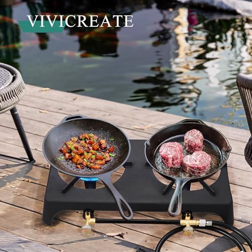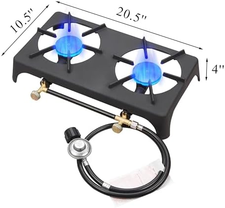 🔥 Full forged iron tenting range, complete physique fabricated from forged iron, very robust, help 200 lbs pot, low strain Propane fuel, with CSA listed regulator and fuel hose, Customary Gasoline Range with Stainless Metal Burner, Adjustable Temperature Management for Cooking and Warming (Black)
