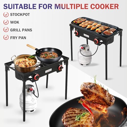 🔥 SUPER HEAVY DUTY POWER – Tremendous energy comes by 2 tremendous heavy obligation burner, The two highly effective burners can output max.120,000 whole BTU/hr, for 60,000 BTU every with 20 PSI