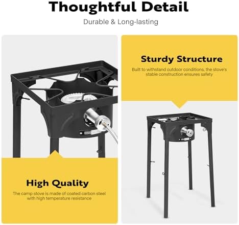 PREMIUM CONSTRUCTION – Fabricated from coated carbon metal, the camp range is secure and sturdy sufficient to stop tipping or wobbling; The CSA-certified 5 PSI-1/8-1200 PVC hose with mesh offers an extended service life