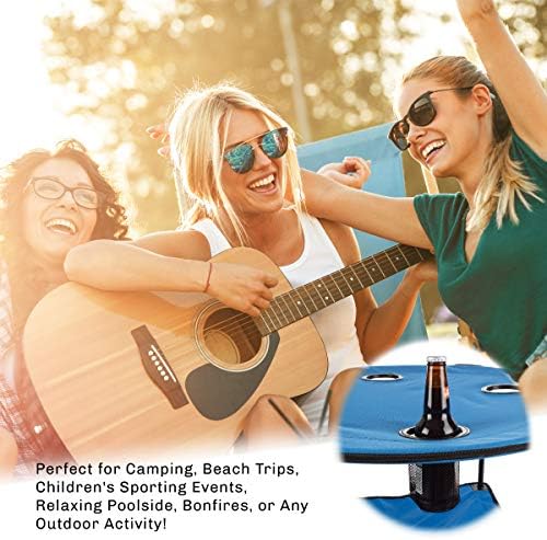 Wakeman Camp Desk – Spherical 2-Tier Folding Desk with 4 Cupholders and Carrying Bag – for Tenting, Seaside, Picnic, Sporting Occasions, and Extra Outdoor,Blue
