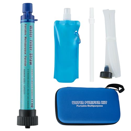 Water Filter Straw Package Out of doors Transportable Private Water Filter Straw Water Air purifier Survival Gear and Gear for Mountain climbing Tenting Journey and Emergency Blue