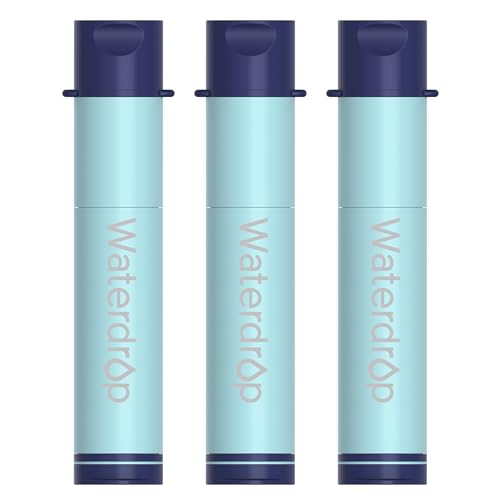 Waterdrop Water Filter Straw, Water Air purifier Survival for Tenting, Journey, Backpacking and Emergency Preparedness, Water Filtration System Survival, 3 Pack, Gentle Blue