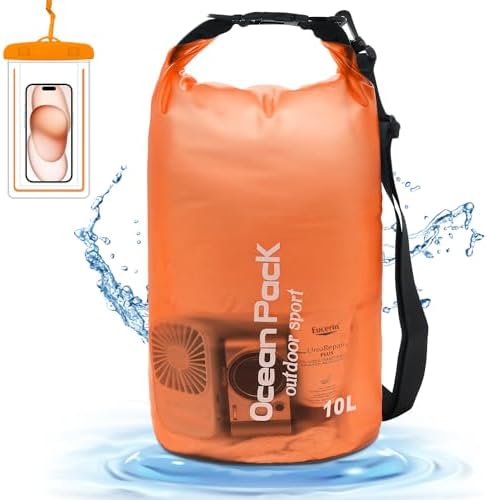 Waterproof Dry Bag for Girls Males,10L/15L Roll High Light-weight Dry Storage Bag Backpack,Floating Sack with Waterproof Cellphone Case, Kayaking,Swimming, Tenting, Climbing, Seashore (Orange, 10L)