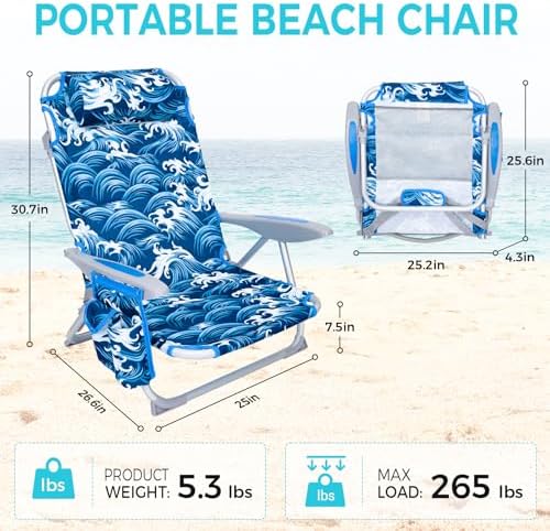 ❤️【Simple to Carry】Our easy-to-use seashore chair will be opened rapidly, measuring 26.77×20.08×30.71 unfolded and 25.59×25.2×4.33 folded, with a weight capability of as much as 265 lbs. It is simple to retailer in your automotive trunk for out of doors adventures.