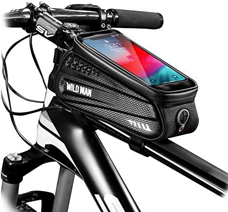WILD MAN Bike Bag, Bike Equipment, Bike Telephone Holder Bike Telephone Mount, Waterproof Bike Telephone Bag, Mountain Bike Accessoriess for Grownup Bikes with 3D Arduous EVA,Telephones Beneath 6.5″ (ES3)