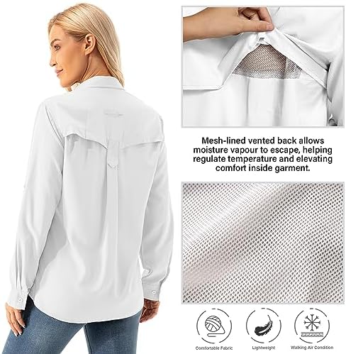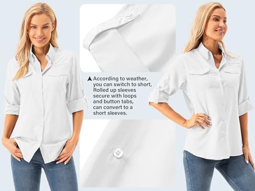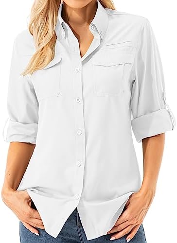 UPF 50 shirt blocks UVA and UBA ray to assist forestall sunburn and pores and skin harm throughout lengthy hours within the solar.Girls’s SPF safari shirt options buttons at arms to transform lengthy sleeves to quick sleeves for warmer days.Lengthy sleeve girls’s fishing shirt options fast dry cloth and Again Vents for final breathability and luxury.Roll as much as quick sleeve shirt, informal garments contains a relaxed, light-weight match for max consolation throughout out of doors actions.Preferrred for climbing, trekking, climbing, touring, tenting, mountaineering, fishing, appropriate for Spring/Summer season/Autumn.With a contemporary basic match, this lengthy sleeve shirt is ultra-light and cozy sufficient for max exercise.100% Polyester, Fast dry cloth, Machine Wash.
