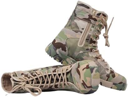Wygwlg Camouflage Boots for Males, Mens Army Facet Zip Waterproof Breathable Camouflage Fight Boots, Sturdy Waterproof Non Slip Climbing Boots, for Tenting, Climbing, Jungle Fight