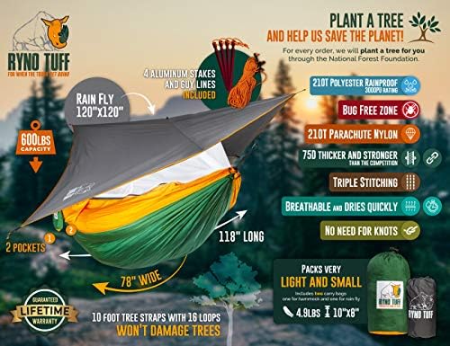 Suits 2 Adults Comfortably – Make the nice outdoor even higher with this light-weight two-person hammock! The included bug internet retains out all these creepy crawlies, so relaxation straightforward as you calm down in its cozy embrace – or flip it if insect safety is not obligatory. The Rain Fly protects you from any inclement climate. The transportable hammock reaches 118 inches extensive by 78 inches lengthy.