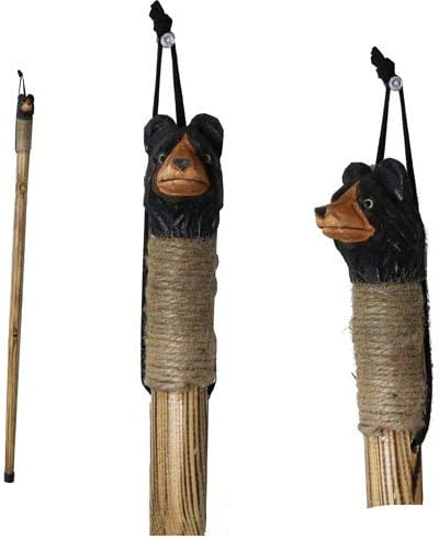 38″ wood mountain climbing persist with wooden carved bear head, twine wrapped grip, & rubber tip