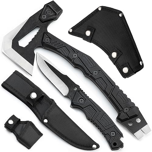 Full-Tang Axe & Knife – The total tang axe boasts a strong, single-piece building, making certain most energy and sturdiness. With a razor-sharp blade and a weight-forward design, it effortlessly cuts by means of branches, ropes, and different obstacles. The mounted blade knife, additionally constructed with a full tang design, presents distinctive versatility.