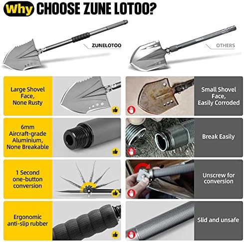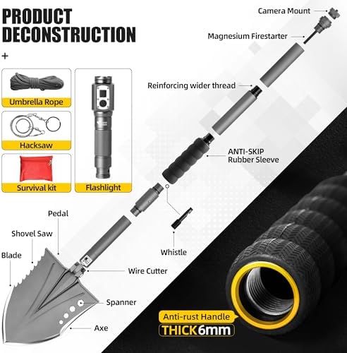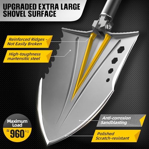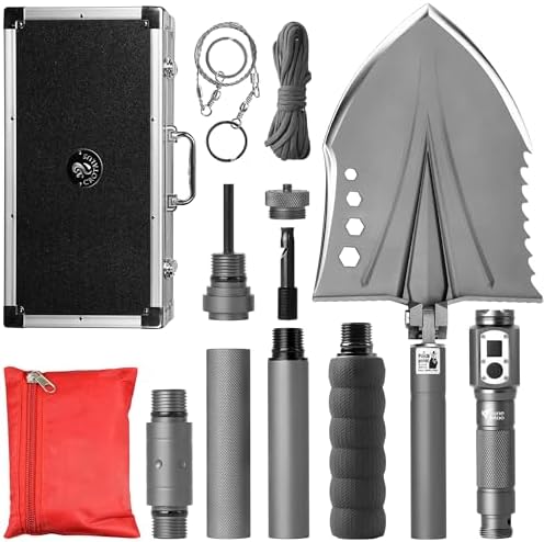 Improve deal with: The deal with is product of military-grade aircraft-grade aluminum, with a thickness of 6mm, making it sturdy and dependable. The foldable shovel is about 33.2″ lengthy and may be disassembled and packed in a silver carrying field, making it nice for a toolbox in a truck, automotive, or RV tenting.